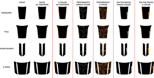 Our 3-bar hood is the perfect compliment to the 3-bar stripes. A 2-layer graphic, digital printed base layer with a 3M Deep Matte Black top layer ...